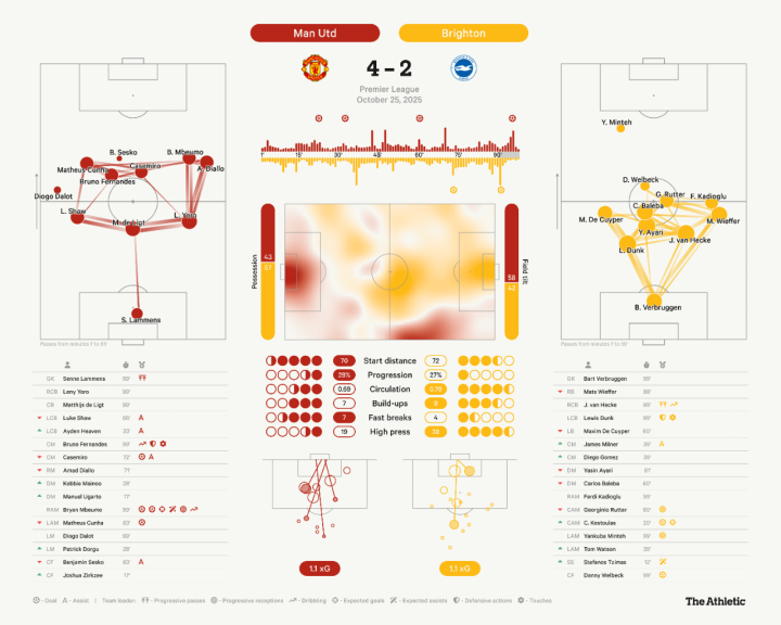 用科比·梅诺换下卡塞米罗的阿莫林,不得不再次换上另一名中场乌加特来加强中场,但布莱顿仍然有机会把比分改写成3-3。这已经不是新闻,对手现在可能都等着卡塞米罗离场的时刻。
