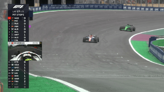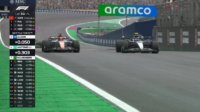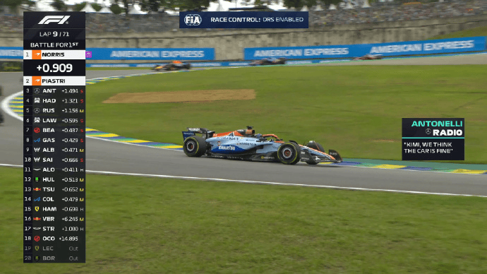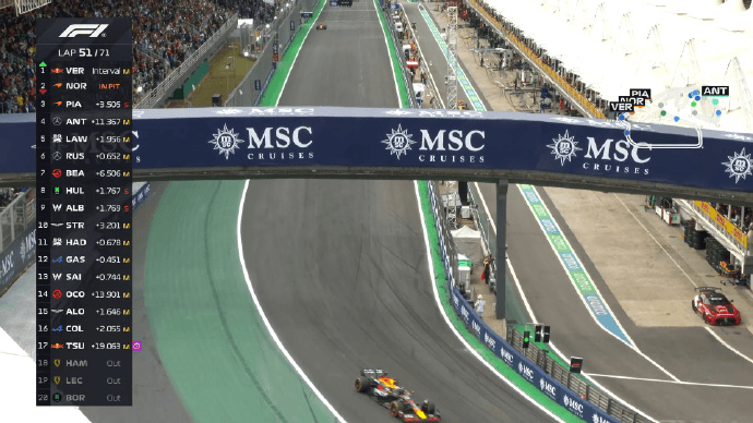 安东内利超回P5,距离前方P4的维斯塔潘7秒;
