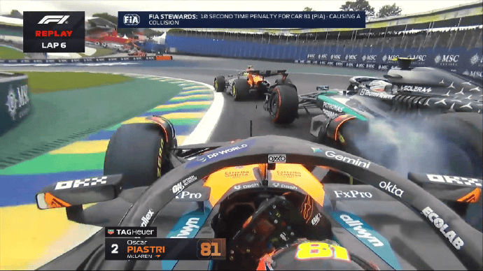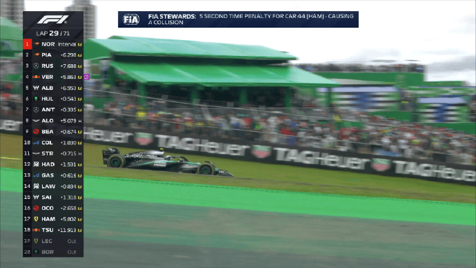 汉密尔顿因引发与科拉平托的碰撞被罚5秒;