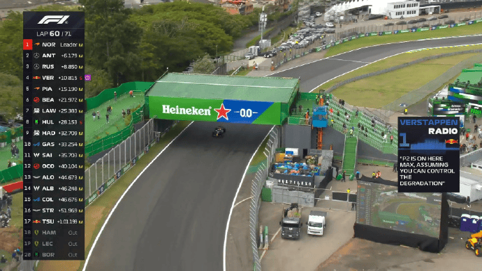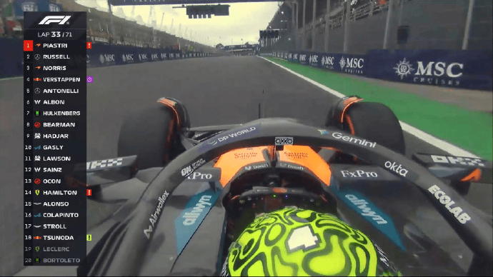 诺里斯出站后迅速过掉维斯塔潘上到P3;