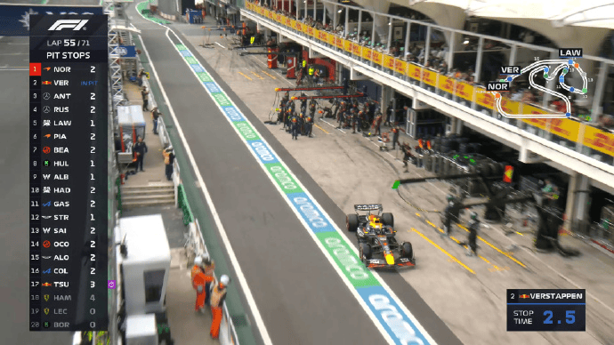 诺里斯二停,维修区起步的维斯塔潘领跑;