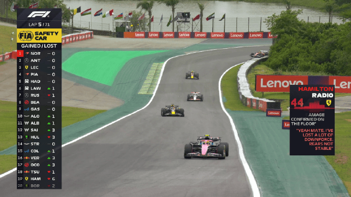皮亚斯特里进站执行罚时,出站后在P8,汉密尔顿退赛;