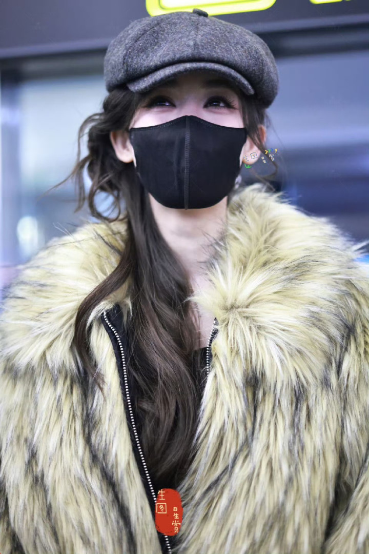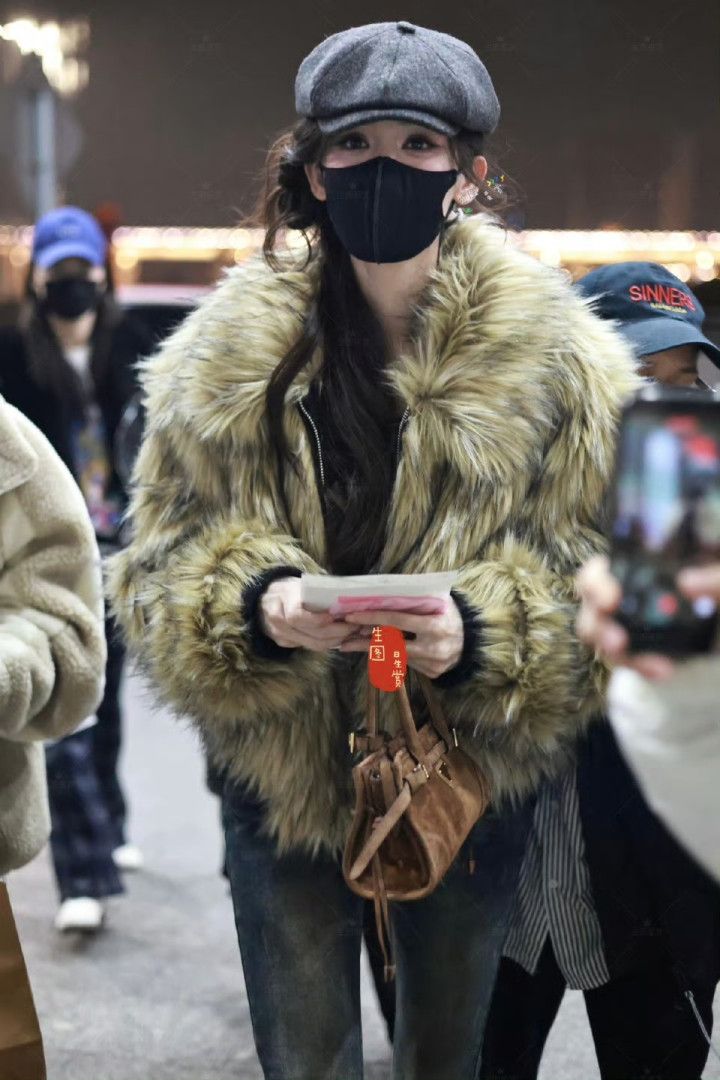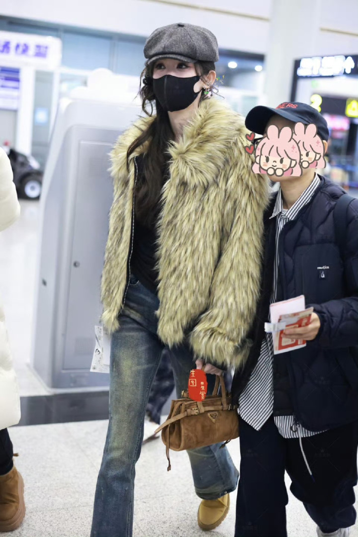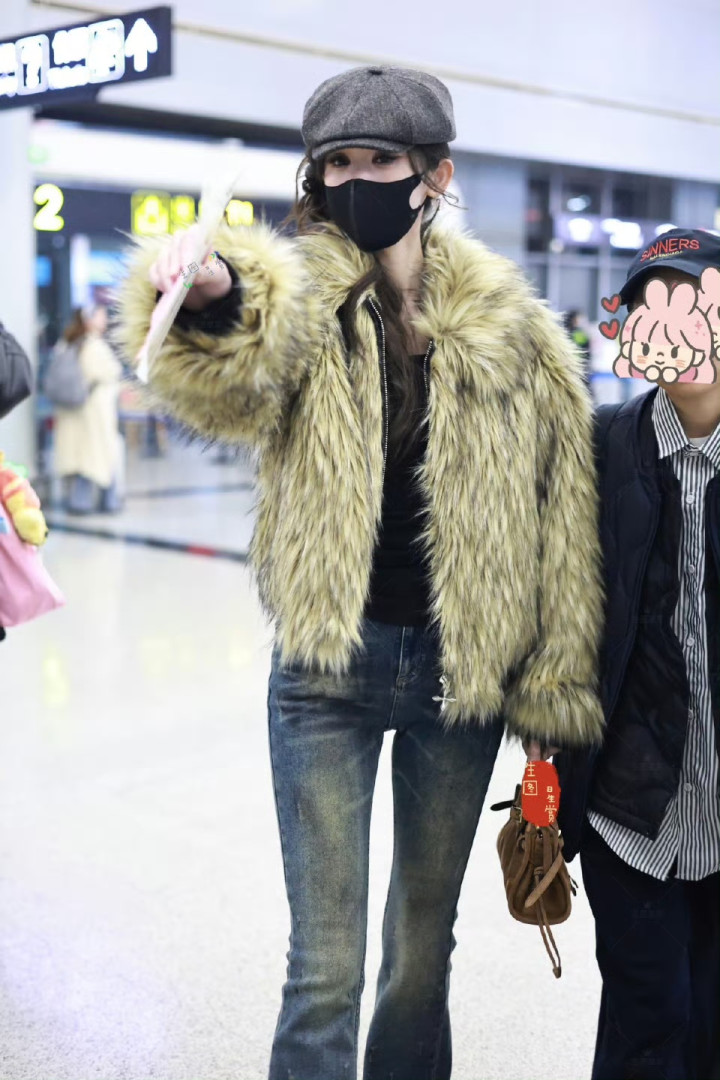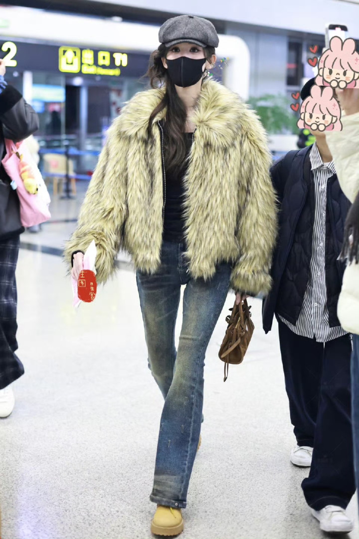娜扎现身机场, 皮草搭配牛仔裤慵懒又时髦, 真又温柔又美到爆炸!