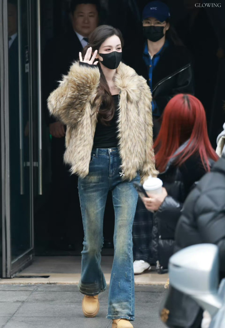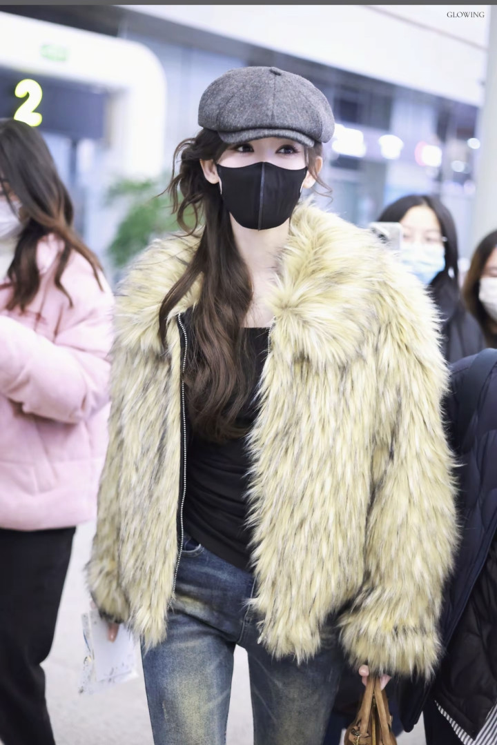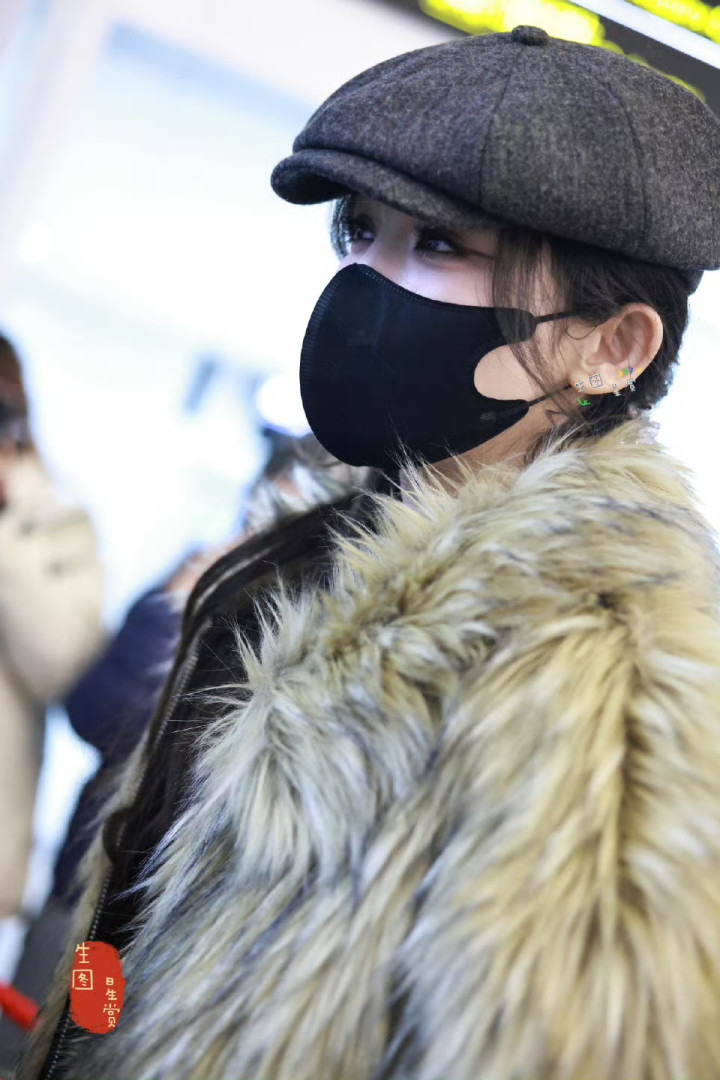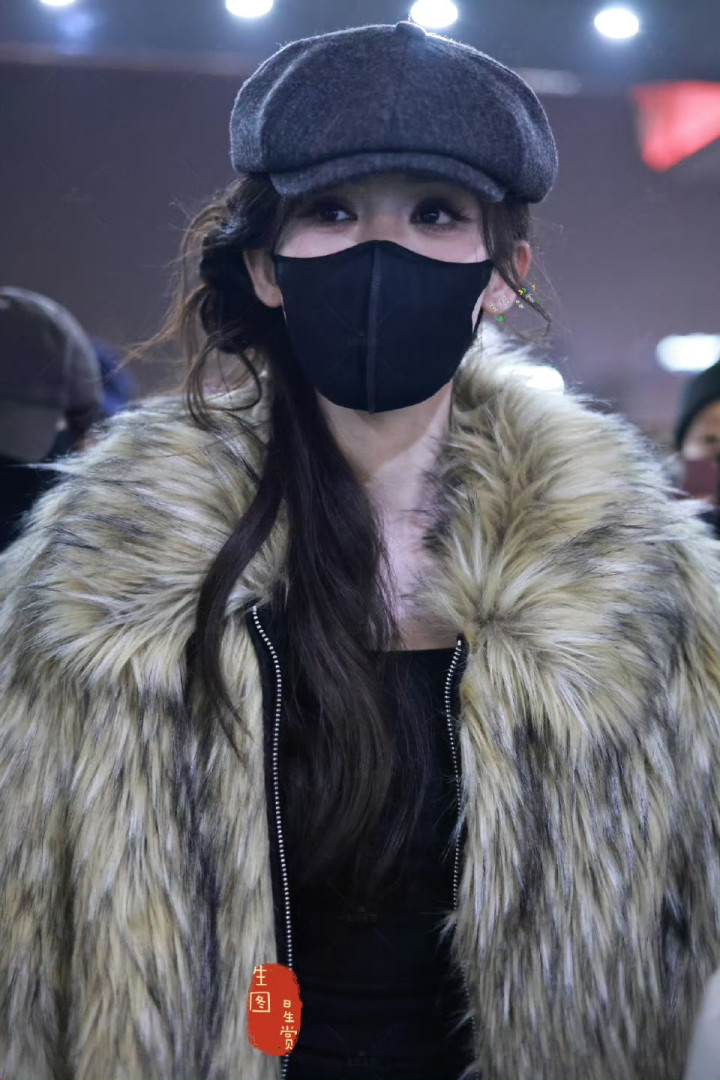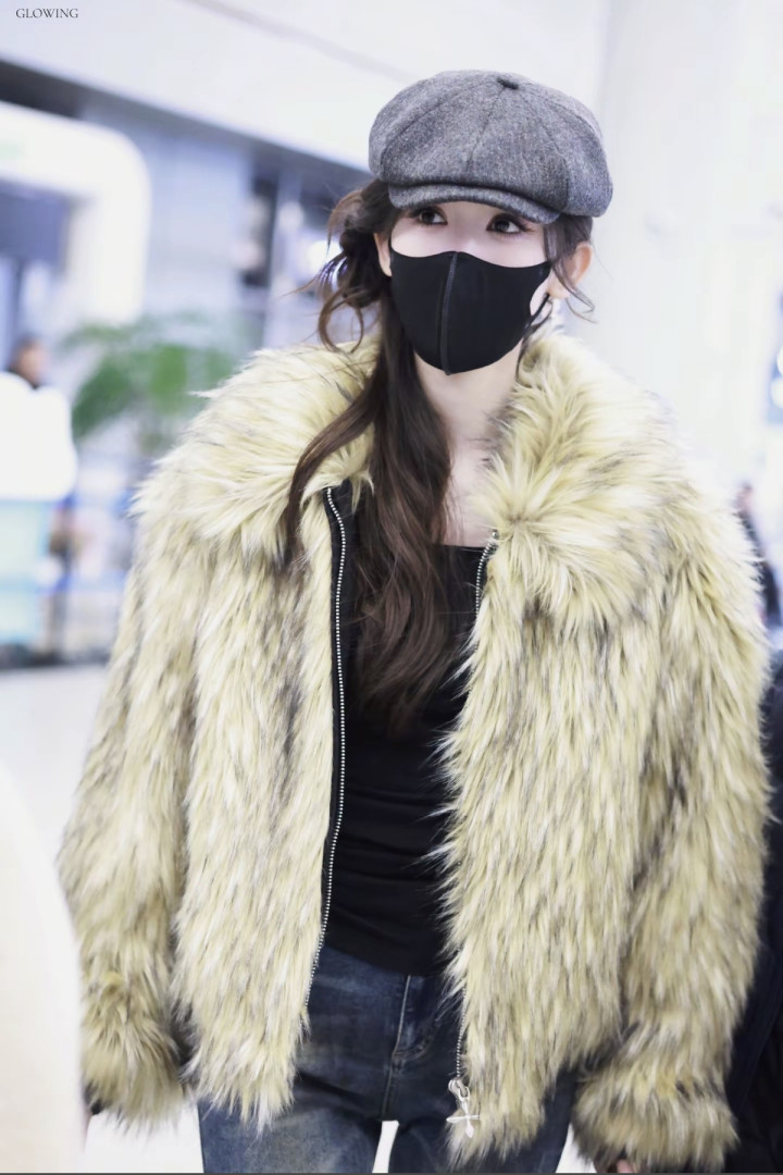 娜扎现身机场, 皮草搭配牛仔裤慵懒又时髦, 真又温柔又美到爆炸!