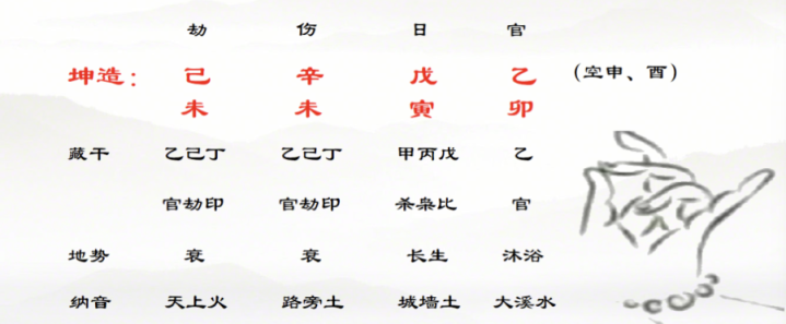 八字坤造:你生于己未年、辛未月、戊寅日、乙卯时(日空:申、酉);9岁起运:壬申;天上火命人,每十年逢春分之后转运,现在走在39至49岁的乙亥大运中。